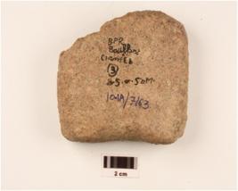 | Description / विवरण | A terracotta skin rubber, made with coarse fabric, rectangular shaped, broken one side and slightly chipped off surface. |