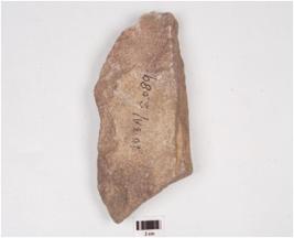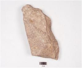 | Description / विवरण | A fragment of quern made on red sand stone, rectangular cross section, one surface polished and other surface rough. |
