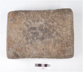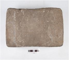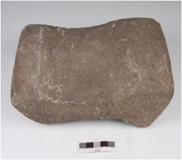 | Description / विवरण | A saddle made of quartzite, four legs are intact, polished upper surface with a depression in the centre. |