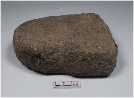 | Description / विवरण | A broken stone saddle with rough surface. |