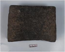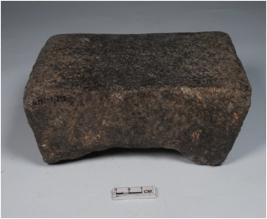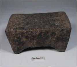 | Description / विवरण | A stone saddle with four legs and smooth surface. |
