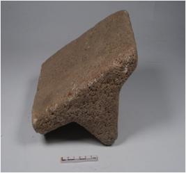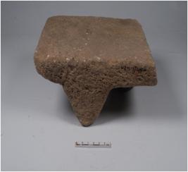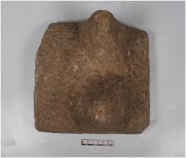 | Description / विवरण | A fragment of stone saddle with two legs and rough surface. |
