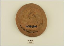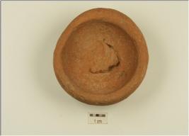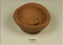 | Description / विवरण | A lamp of red ware has incurved rim, tapering sides and disc base, of medium fabric showing an oxidized core. |