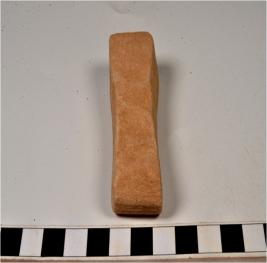 | Description / विवरण | A whetstone of sandstone having concave depression on all the four sides of rough surface. |