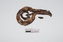 | Description / विवरण | It is a fragmented iron door hook. It is broken into four pieces. It is completely corroded and rusted. The surface is rough and the thickness is uneven. It is fragile. |