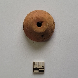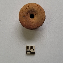 | Description / विवरण | A Spindle whorl made from terracotta. It is Spherical shaped with a rounded profile and a central perforation. It is in earthy reddish-brown color, typical of fired clay. |