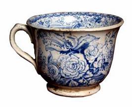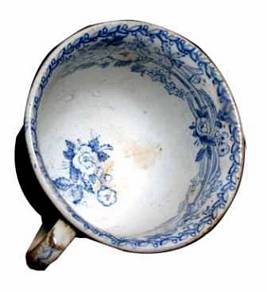 | Description / विवरण | A porcelain cup with loop shaped handle on one side. It is decorated with flower designs on the body and also inside the rim portion. It has slightly elevated base, bulged body with outturned thick rim. A pair of roses with leaves is seen at the bottom inside at the centre of the cup. The base, handle and rim portions are treated with gold colour. |