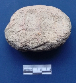 | Description / विवरण | It is a mushtika. The surface is rough and gritty. It is roughly oval in shape. The finger impression are also seen on are side of the surface. |