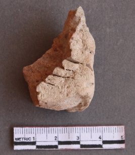 | Description / विवरण | It s a terracotta cake fragment, both well fired. Course ware, no surface treatment on it. Impression on both the sides. |