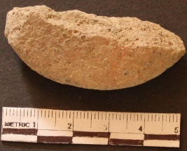 | Description / विवरण | It is a half pottery disc with no ornamentation and gritty surface. It is well fired piece. |