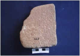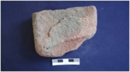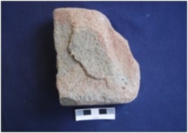 | Description / विवरण | Fragment of a Muller, made on sandstone, smooth surface on one side, rough on the other side. |