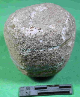 | Description / विवरण | It is an intact round shape weight, it s colour is off white and rough surface. |