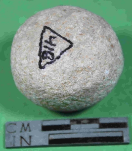 | Description / विवरण | It is a small size circular shape weight with flat base , it s colour is off white and rough surface. |