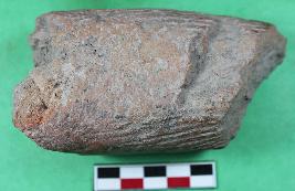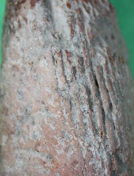 | Description / विवरण | Broken piece of terracotta mullar and decorated with incised by parallel lines stroke. It is dull red in colour. |