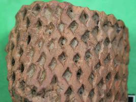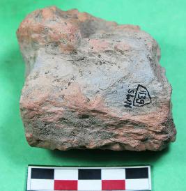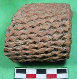 | Description / विवरण | Fragment of terracotta mullar cylindrical in shaped and decorated with incised by geomatrical stroke. It is dull red in colour. |