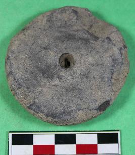 | Description / विवरण | A medium-sized spool having drum like shape with central depression on both sides. Its colour is red and rough surface. |