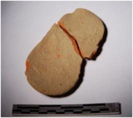| Description / विवरण | A mended terracotta skin rubber oval in shaped of smooth surface. |
