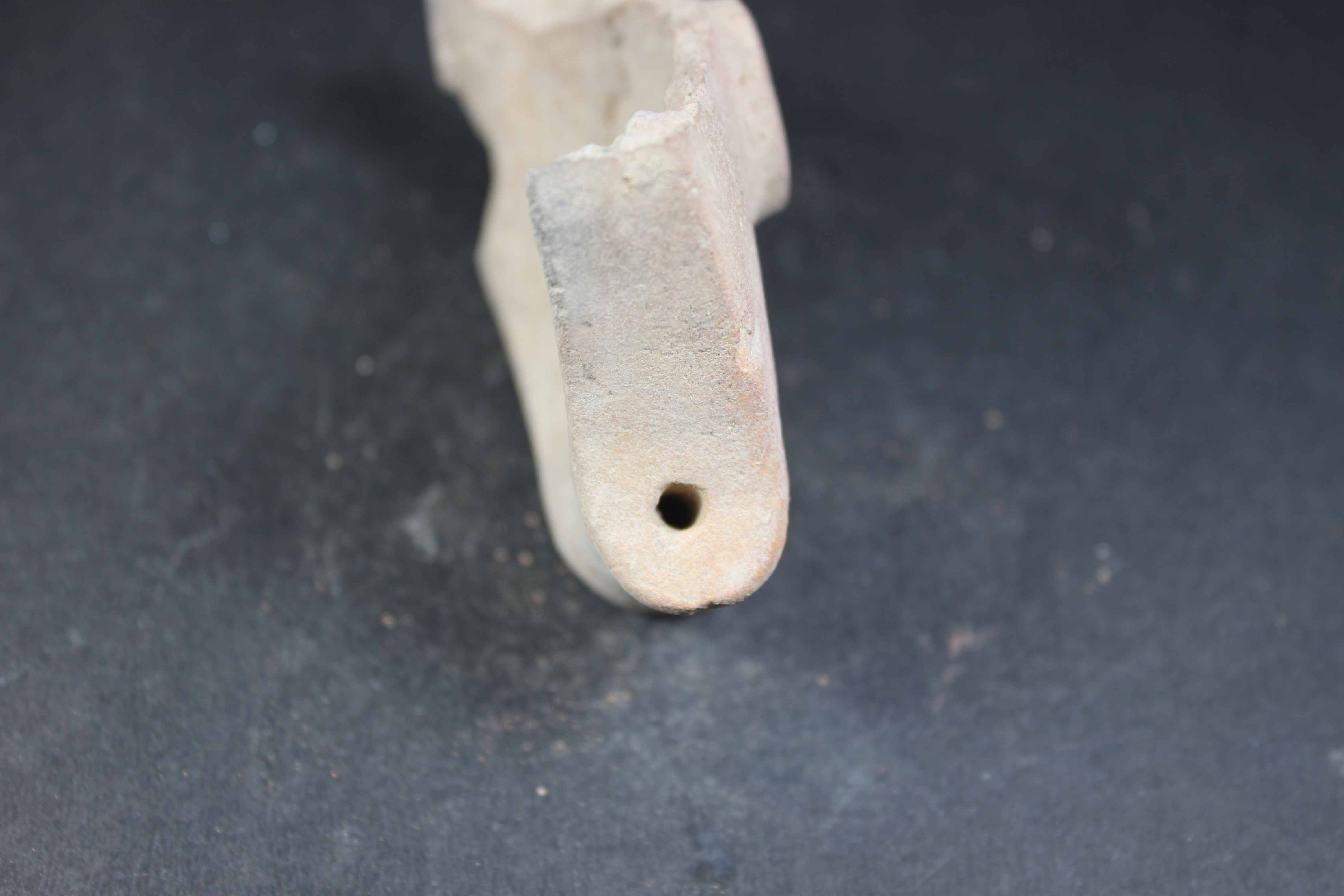 Fragment of a Lamp with handle and short pedestal having rough surface.