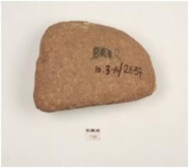| Description / विवरण | A sandstone pestle, almost triangular in shape and smooth surface at one side. |
