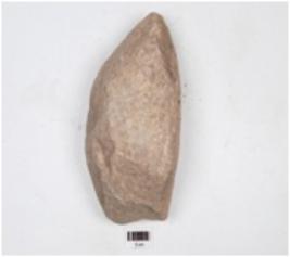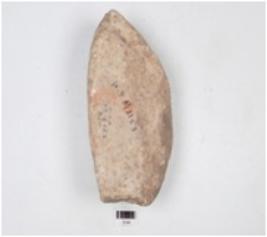 | Description / विवरण | Fragment of sand stone quern, plano convex cross section and rough surface. |
