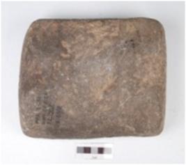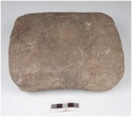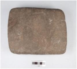 | Description / विवरण | A rectangular saddle made of quartzite, chipped off surface and legs are missing. |