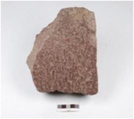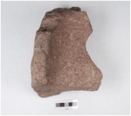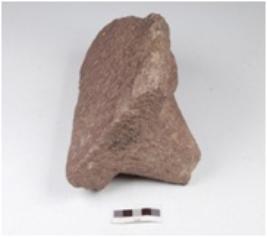 | Description / विवरण | Fragment of a saddle made of quartzite, two legs are intact and polished upper surface. |