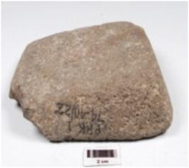 | Description / विवरण | A square saddle made of quartzite, rectangular cross-section and chipped off surface. |
