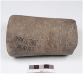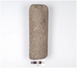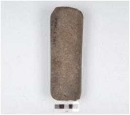 | Description / विवरण | A rectangular pounder made of quartzite, circular cross-section, partly broken, chipped off surface. |