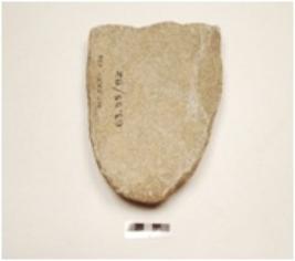 | Description / विवरण | A fragment of saddle quern half broken, oval shaped falt top, round base, chipped off from surface and edges, made of sandstone. |