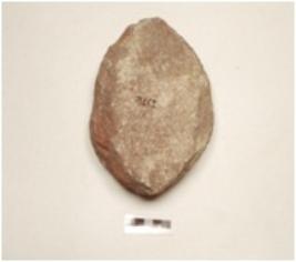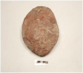 | Description / विवरण | A fragment of saddle sandstone irregular circular in shape, chipped off from edge and rough surface. |