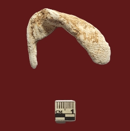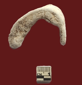 | Description / विवरण | An indeterminate shell object.The object has a distinct curved, hook-like or boomerang shape, with one end thicker and slightly flattened while the other is narrower. The flat surface is having criss-cross pattern over it.It is Off-white to light beige in color The texture is rough and porous, |
