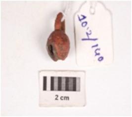 | Description / विवरण | A small copper bell with a globular body and a ring like tip and corroded surface. |
