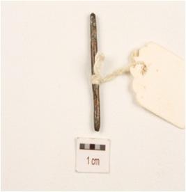 | Description / विवरण | Copper rod with broken end, green incrustation on surface, thinner at one end and circular in section. |