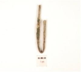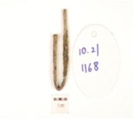 | Description / विवरण | Fragment of an antimony rod made of copper with square cross section and bended. |