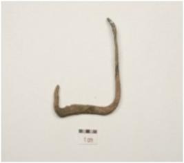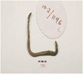 | Description / विवरण | A fragment of hook made of copper, curved and pointed one end, another flat and rectangular in section. |