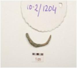 | Description / विवरण | A fragment of hook made of copper, pointed one end, square cross section and rough surface. |