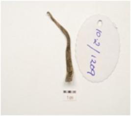 | Description / विवरण | A fragment of pin made of copper, rough surface, rectangular in cross section and pointed one end. |
