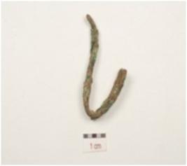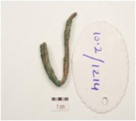 | Description / विवरण | A fragment of hook made of copper, pointed one end, other is flat, rough surface and rectangular cross section. |