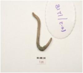 | Description / विवरण | A fragment of hook made of copper, rectangular in cross section from one side and square in section with rough surface. |