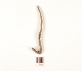 | Description / विवरण | Copper wire with rectangular cross section, corroded surface, narrow at one end and broad at other end. |