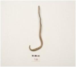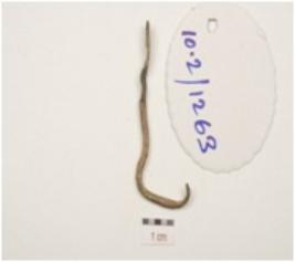 | Description / विवरण | A hook made of copper, pointed one end with rough surface. |