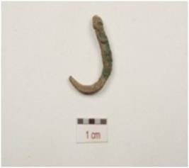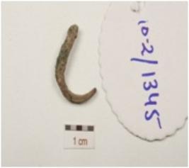 | Description / विवरण | A fragment of hook made of copper, pointed one end, other broken, rectangular cross section and rough surface. |