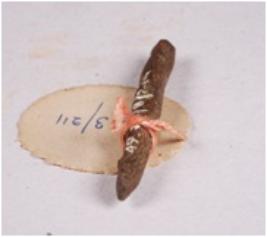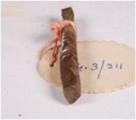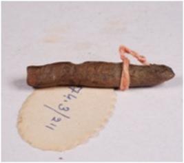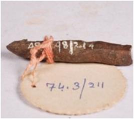 | Description / विवरण | Fragment of copper rod with rough surface, pointed at one end and other end is flat, square in section. |