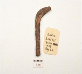 | Description / विवरण | iron bent rod with rough surface, slightly bent at one end, broken from both ends,and circular in section. |