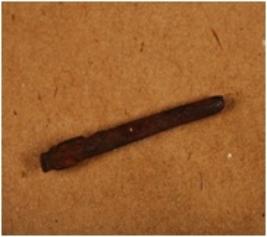 | Description / विवरण | Copper pin, one end is bulbose and other one is pointed, tip is slightly broken, has corrosion layer on surface and rough even. |