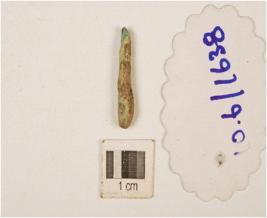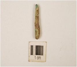 | Description / विवरण | Fragment of copper rod corroded surface, circular cross section. |