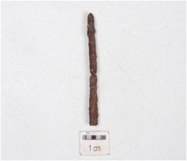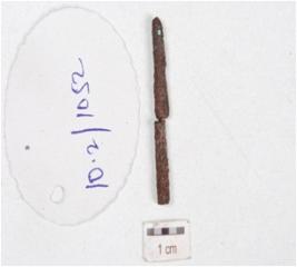 | Description / विवरण | A fragment of copper antimony rod, broken in two pieces surface is rough and corroded. |
