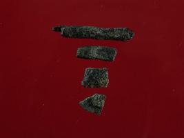 | Description / विवरण | This is a copper piece. It is broken into four pieces. Surface is rough with hard patina deposition on it with greenish appearance. |