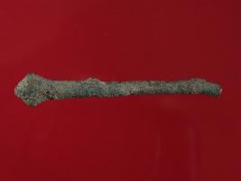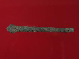 | Description / विवरण | Trench V to X, Stratum Layer 1 This is a copper pin made of copper alloy. It has a pyramid like design on its one side. Hard patina with dust is deposited on it. Surface is rough and appearance is of grey and green colour. |