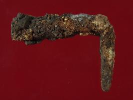 | Description / विवरण | Trench B X 1, Stratum Layer 10 The object is an iron hook. Surface is rough and craggy due to the heavy deposition of heavy rust. |